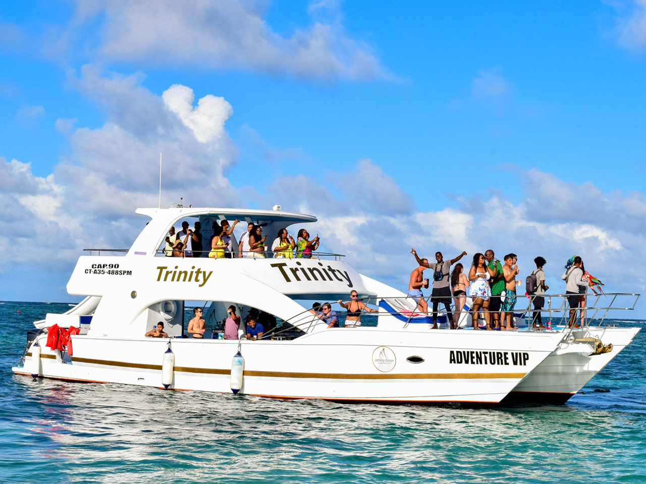 • Spacious multi-level catamaran with dance floors and social areas